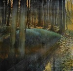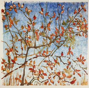 2005Berkenbos op Schiermonnikoog. Houtsnede, reductie.