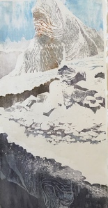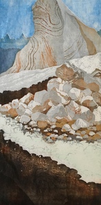 2020Panta rei, alles is in beweging, alles verandert. Van rots naar steen naar kiezel naar zand naar samengedrukt sediment naar steen naar berg. Van deze grote houtsnede maakte ik verschillende versies, zomer en winter.