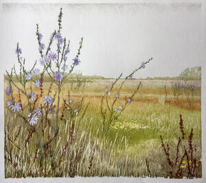 2006De Groningse kust in de verte. Houtsnede, reductie.