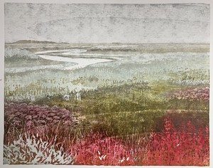 2006Groningse kust in de verte. Houtsnede, reductie.